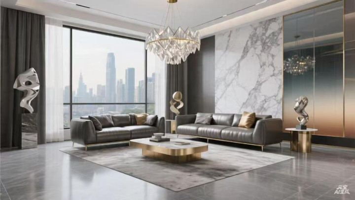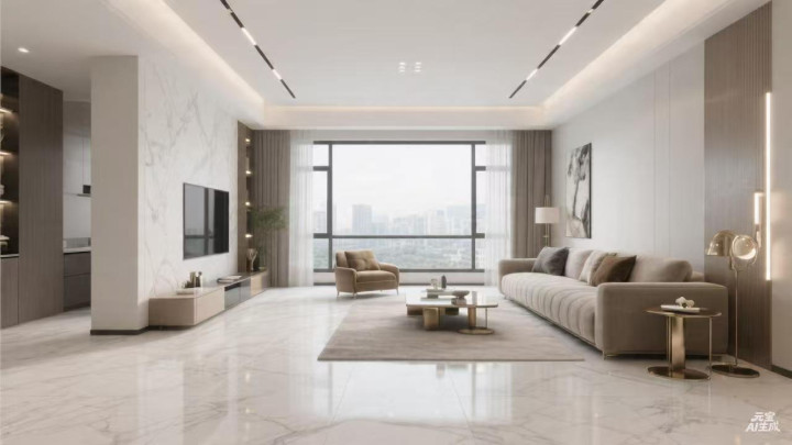 大户型空间开阔,大尺寸瓷砖能充分展现气势。近年流行的 1200×2400mm 超大板砖,铺贴后几乎无缝,极具奢华感,是高端住宅的首选。