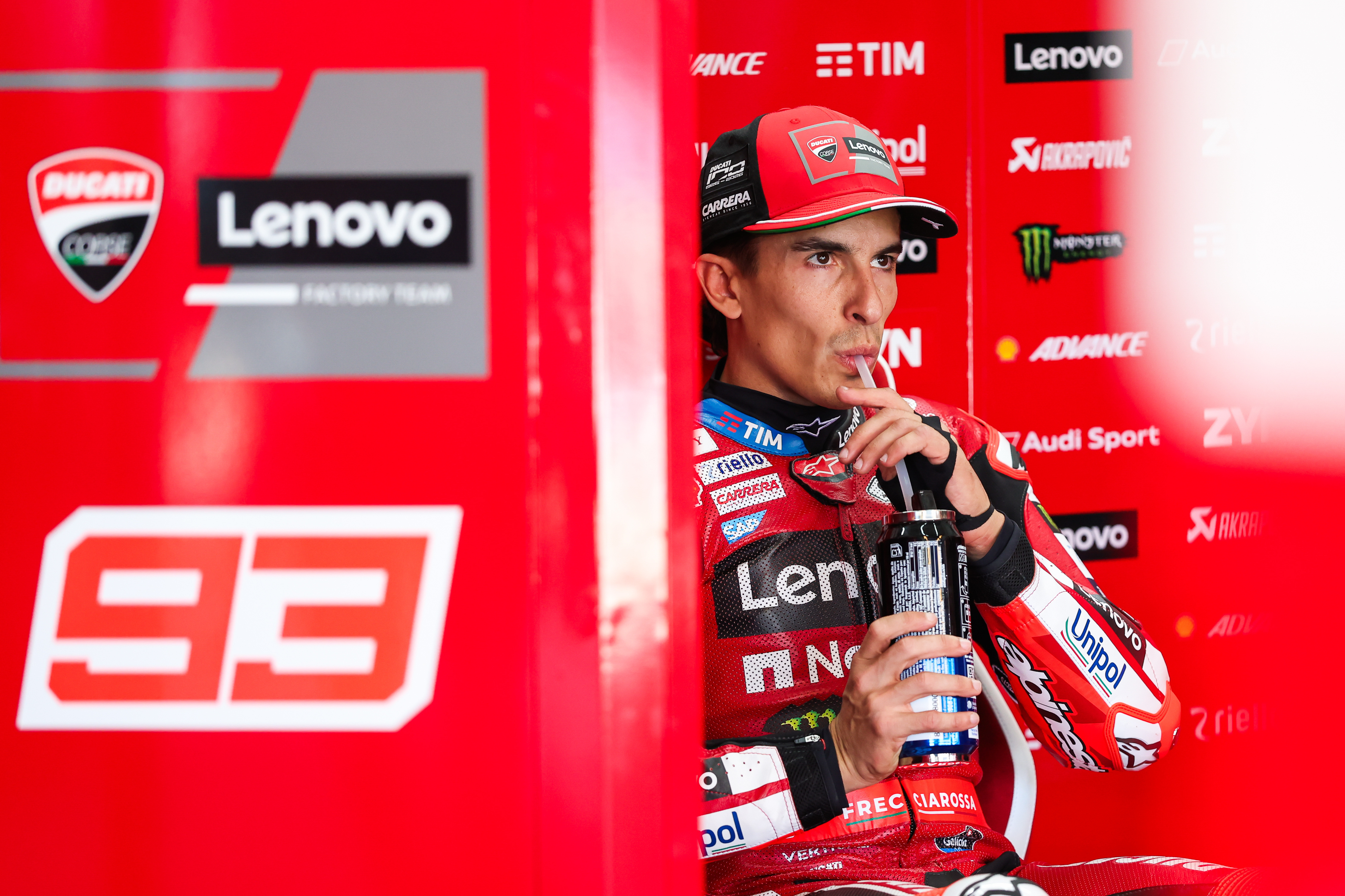 4月26日,杜卡迪车队西班牙车手马克·马奎斯在比赛前。最终,他未能完赛。新华社发(钱俊摄)